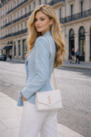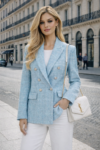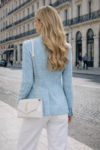 Soyez effrontément stylée & classe avec ce blazer bleu ciel tweed long.