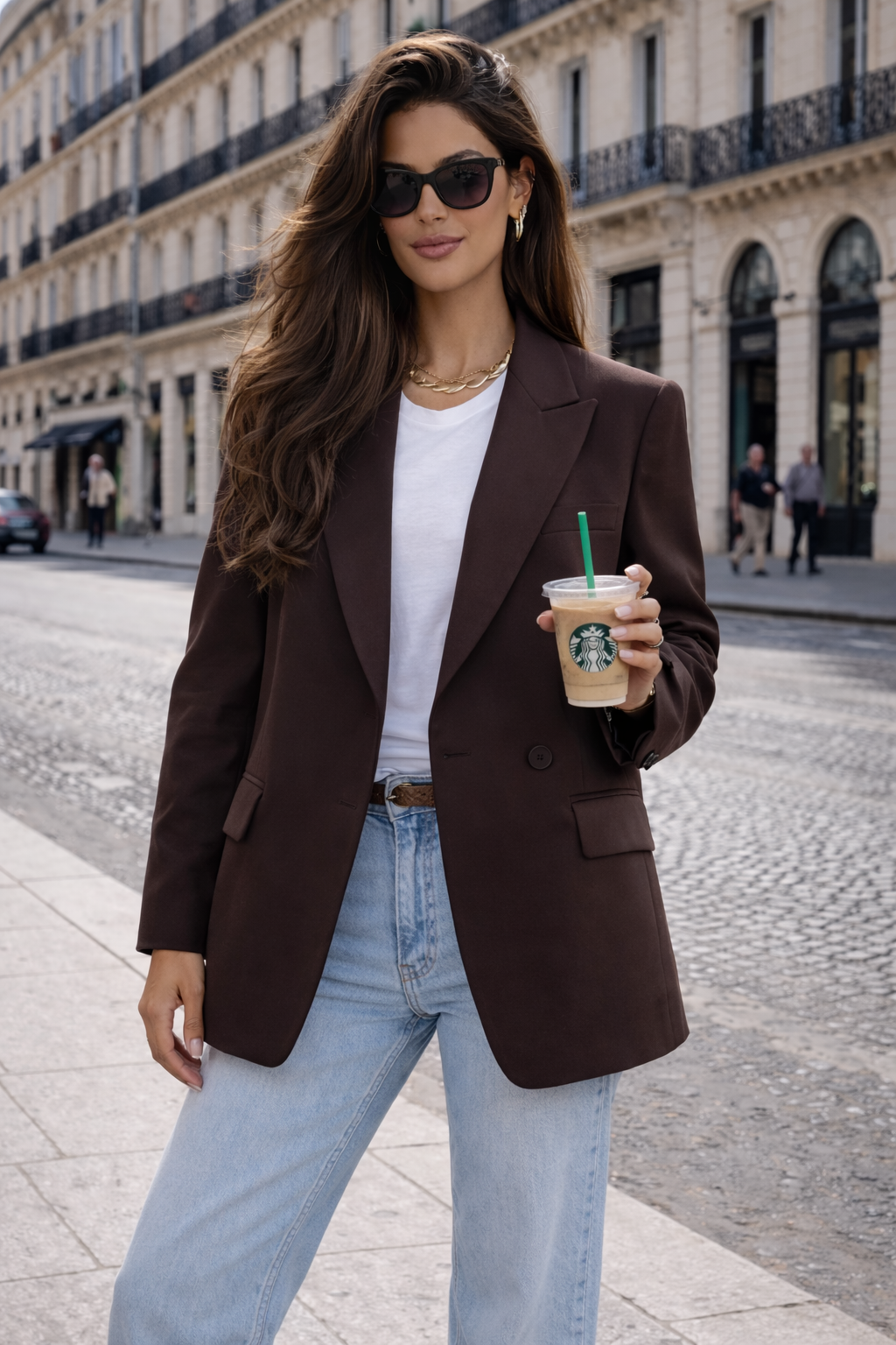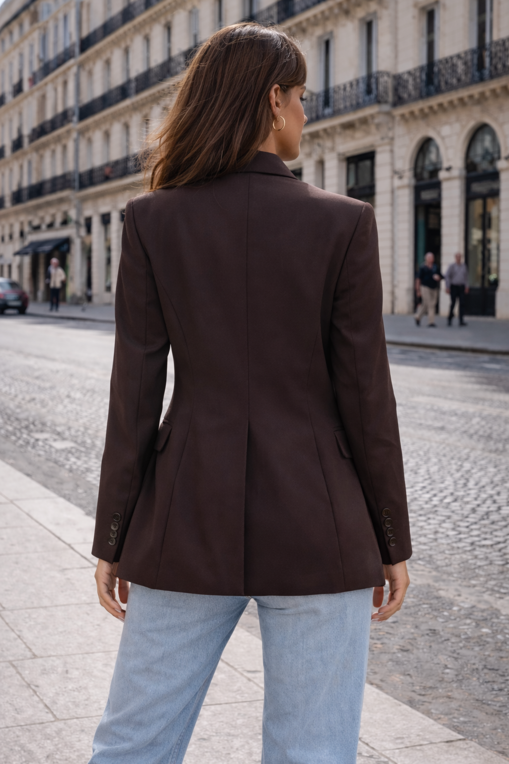 Soyez effrontément stylée & classe avec ce blazer chocolat femme manches longues.