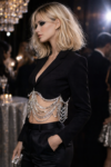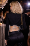 Soyez effrontément stylée & classe avec ce blazer noir court avec chaînes strass, Lady night