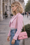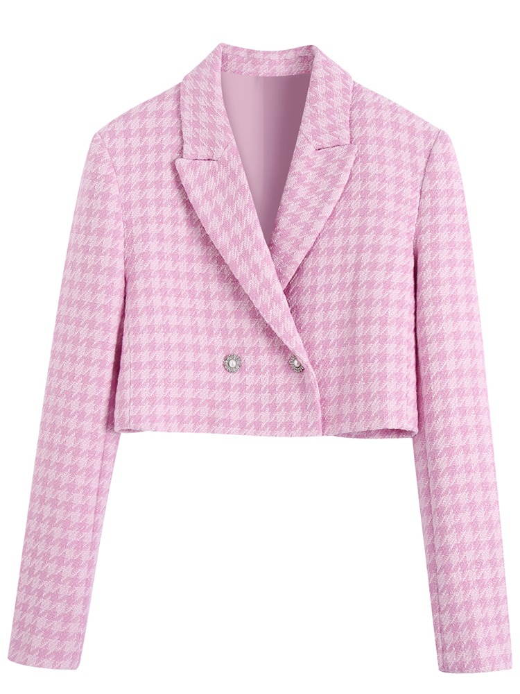 Soyez effrontément stylée & classe avec ce blazer rose pâle pied-de-poule court Cluesless vibes.