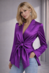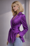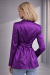 Soyez effrontément stylée & classe avec ce blazer violet court satin Silky.